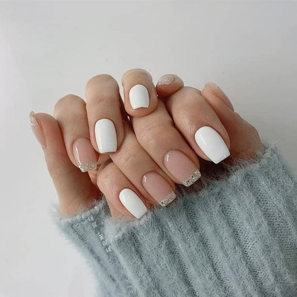 Kxamelie White Black French Tips Press On Nails Short With Designs Square Shape Glue On Nails Fake Nails For Women Acrylic Nails Press On Full Cover Coffin Nails 28pcs False Nails